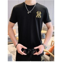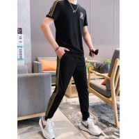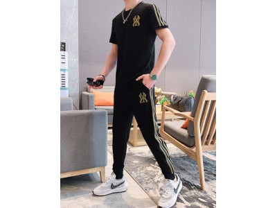 悦优选男士夏季刺绣套装男2021新款休闲运动潮流韩版帅气两件套冰